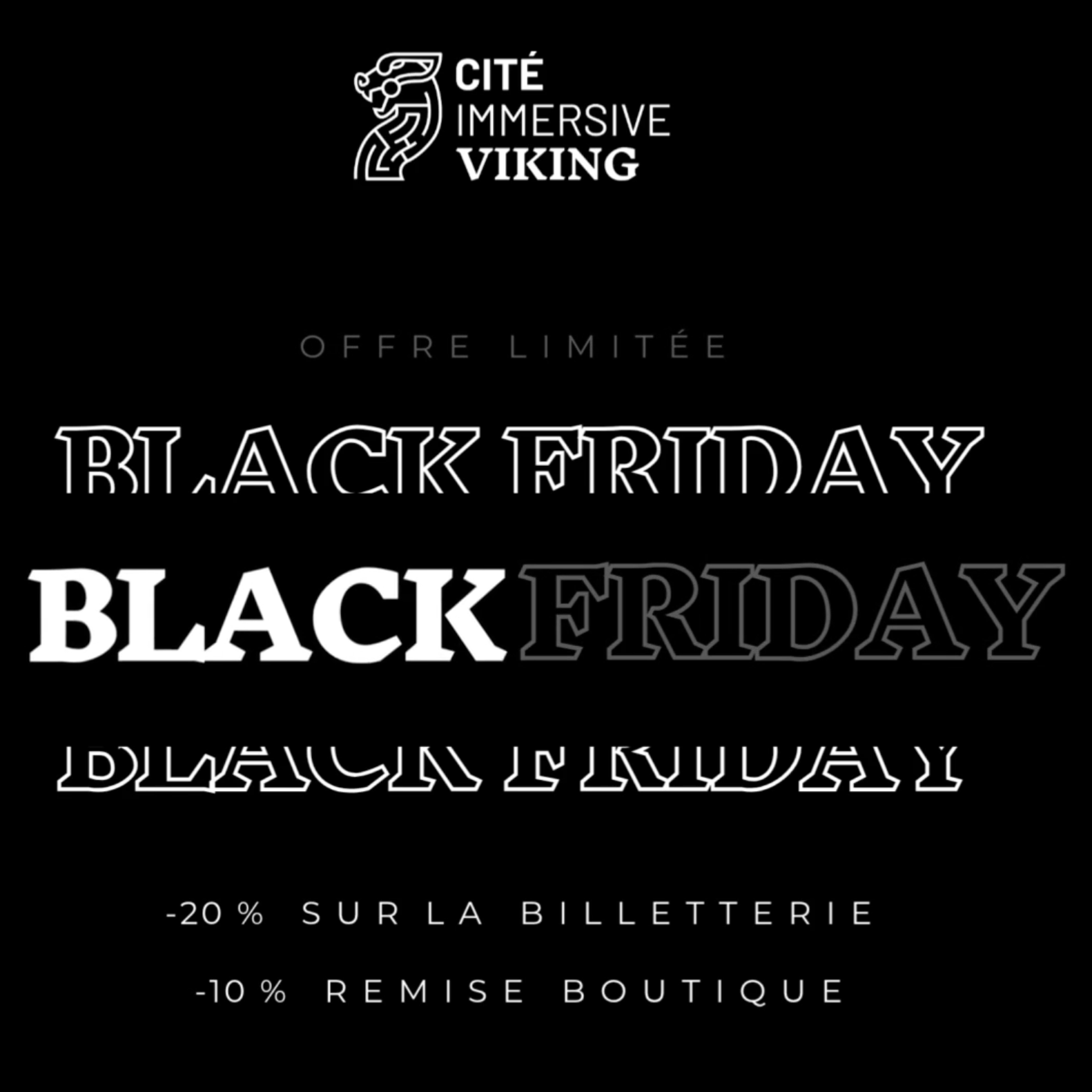 Cette fin d’année, la Cité Immersive Viking active le mode butin légendaire : du 24 au 28 novembre, profitez d’offres exceptionnelles pour vivre — ou offrir — une immersion unique au cœur de l’histoire viking.